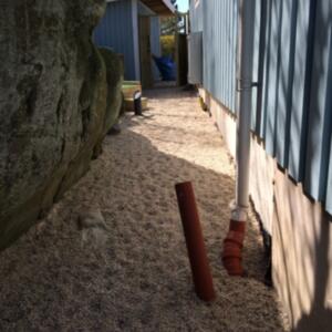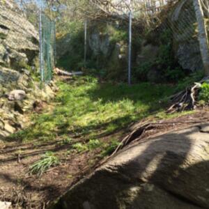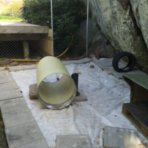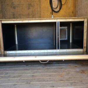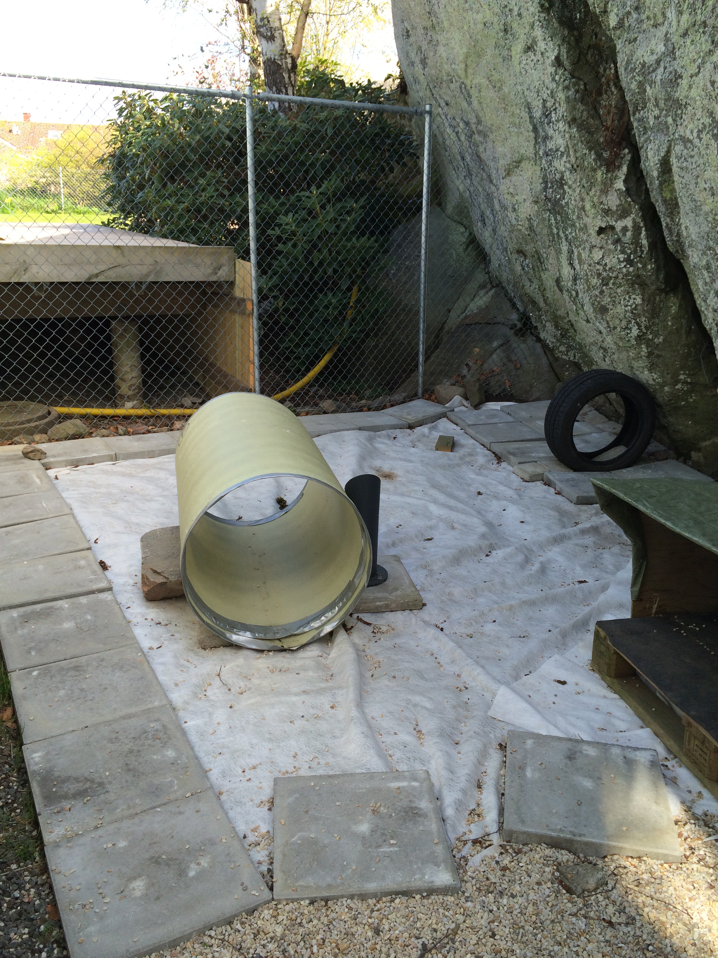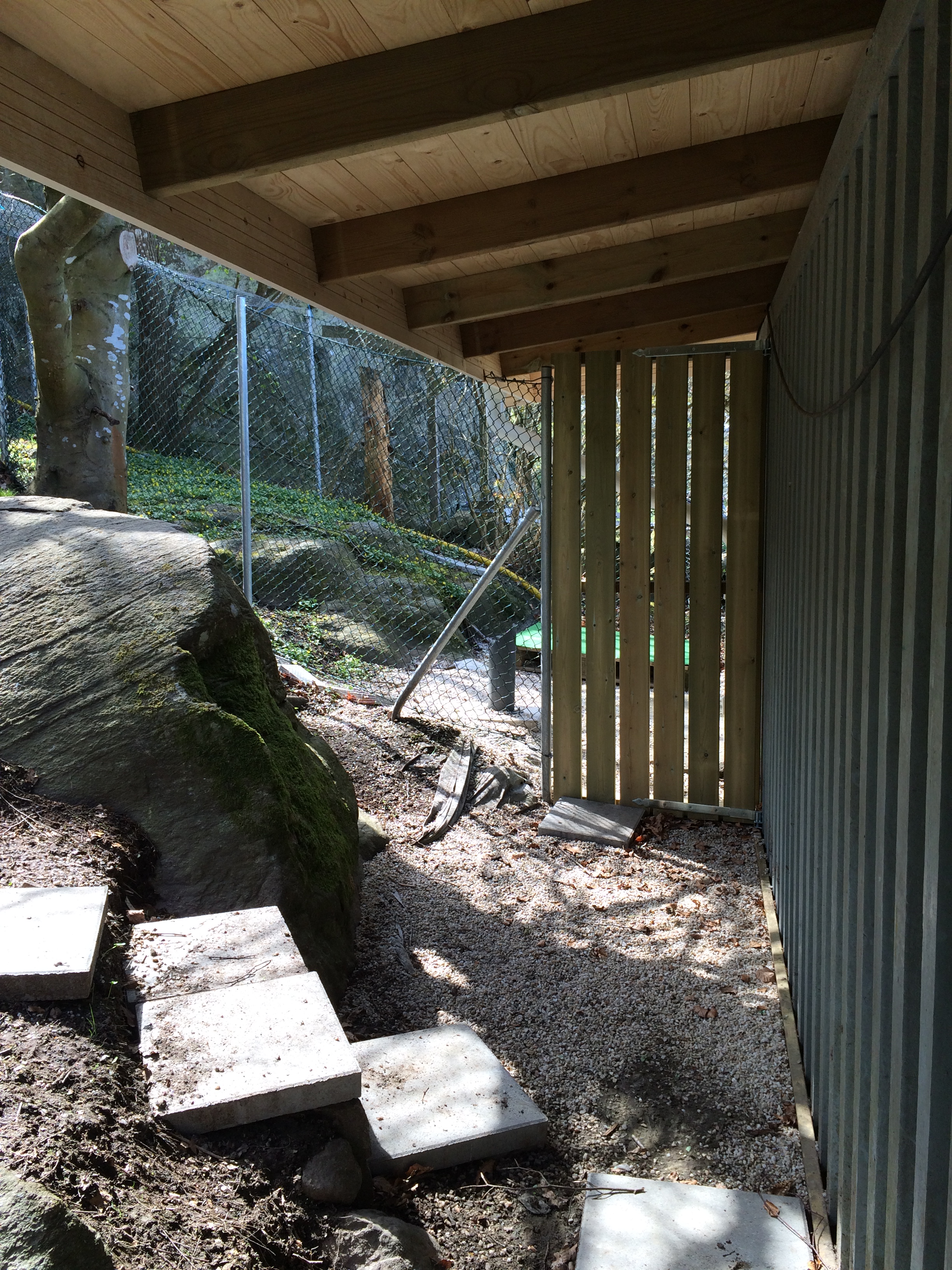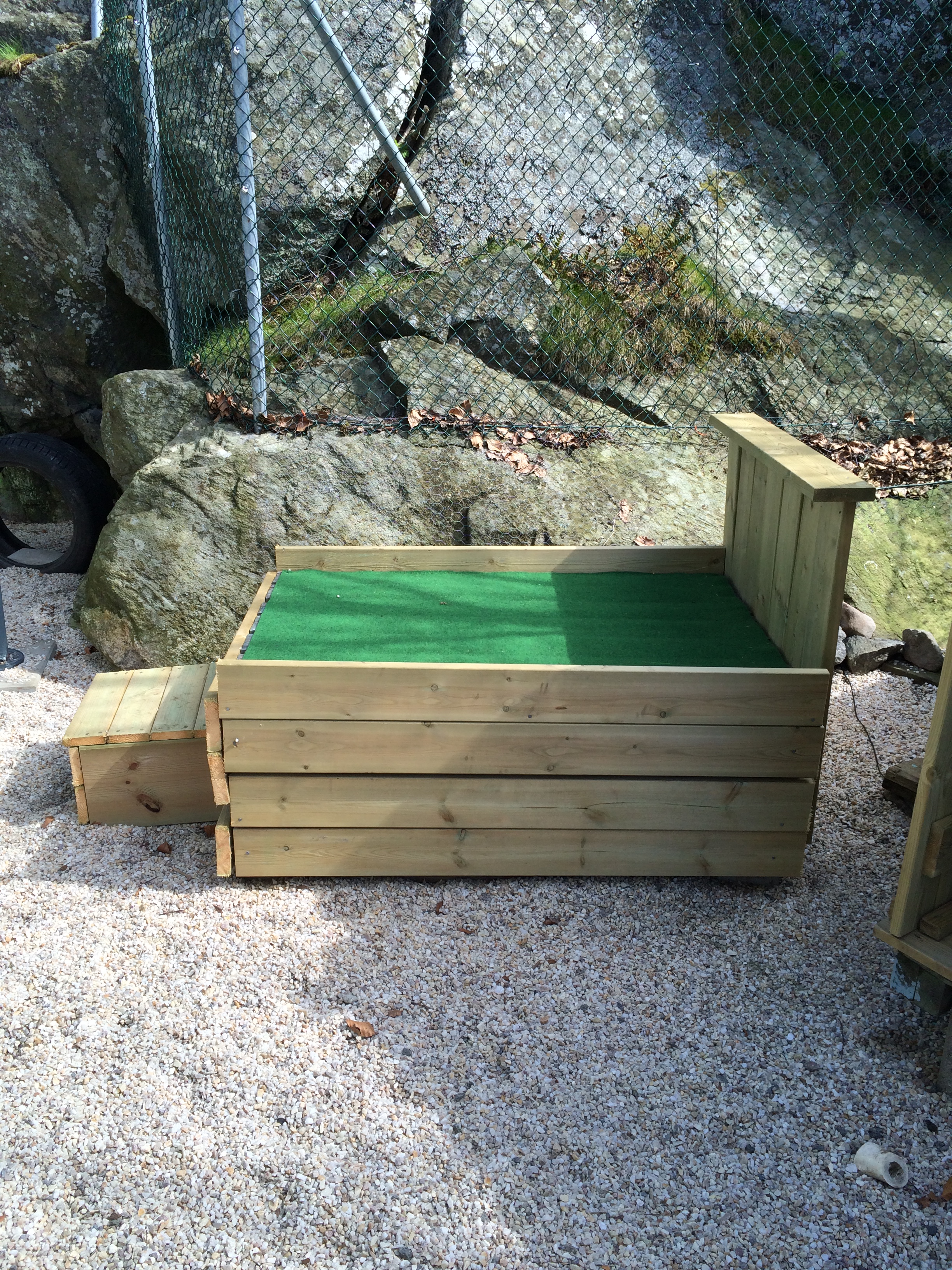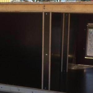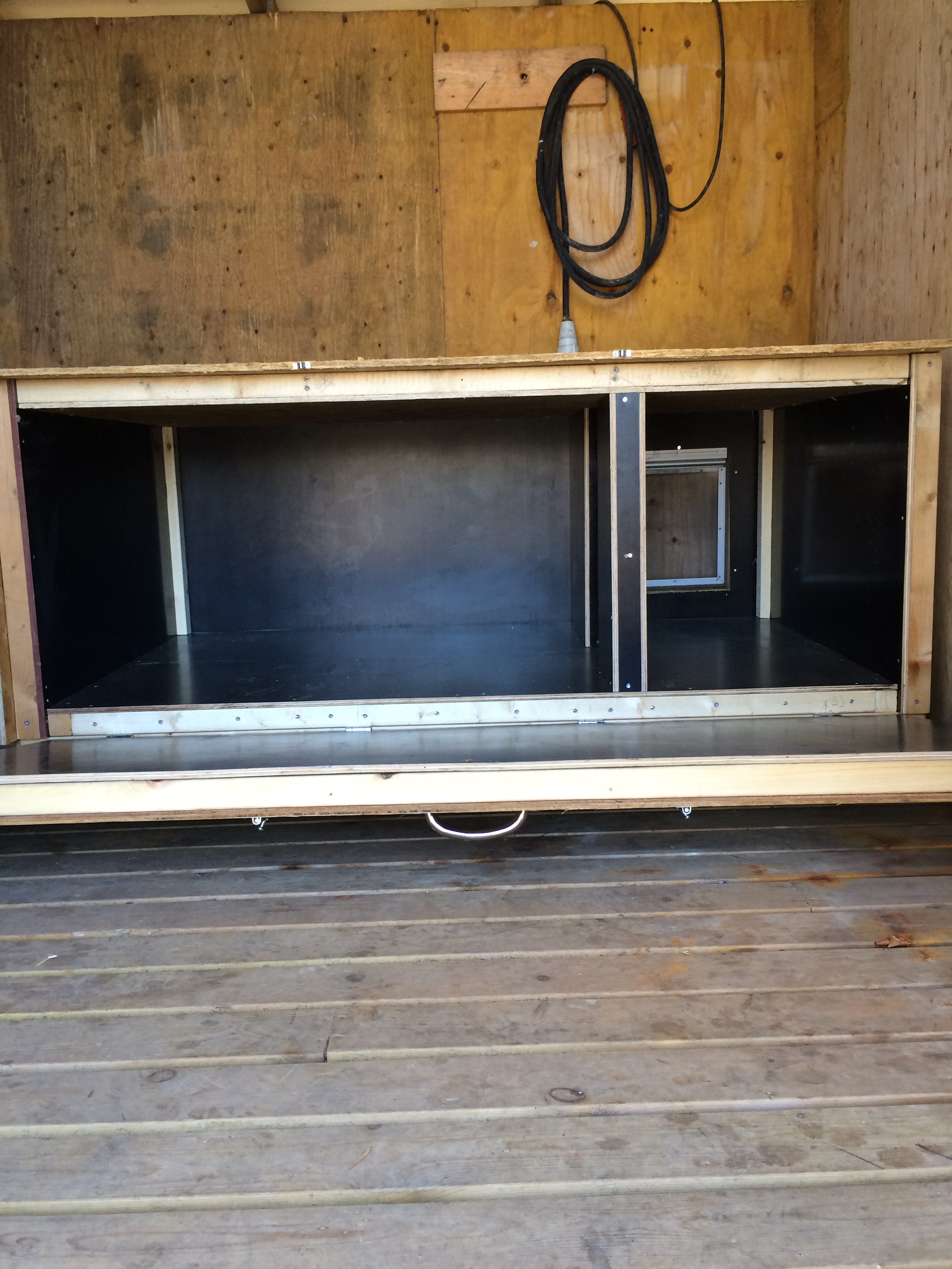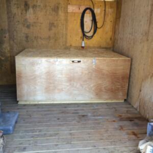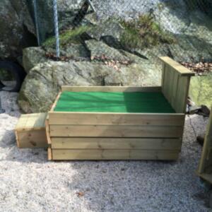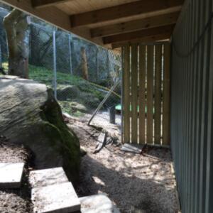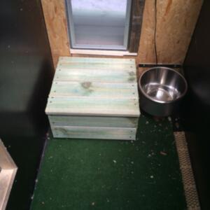 Denna används för det mesta i nödfall då vi inte kan ha med hundarna några timmar. Den har byggt i etapper och idag är den uppdelad på två så att vi lätt kan separera tikar och hanar vid löpperiod. Det finns alltså en vinterbonad hundkoja i varje del.